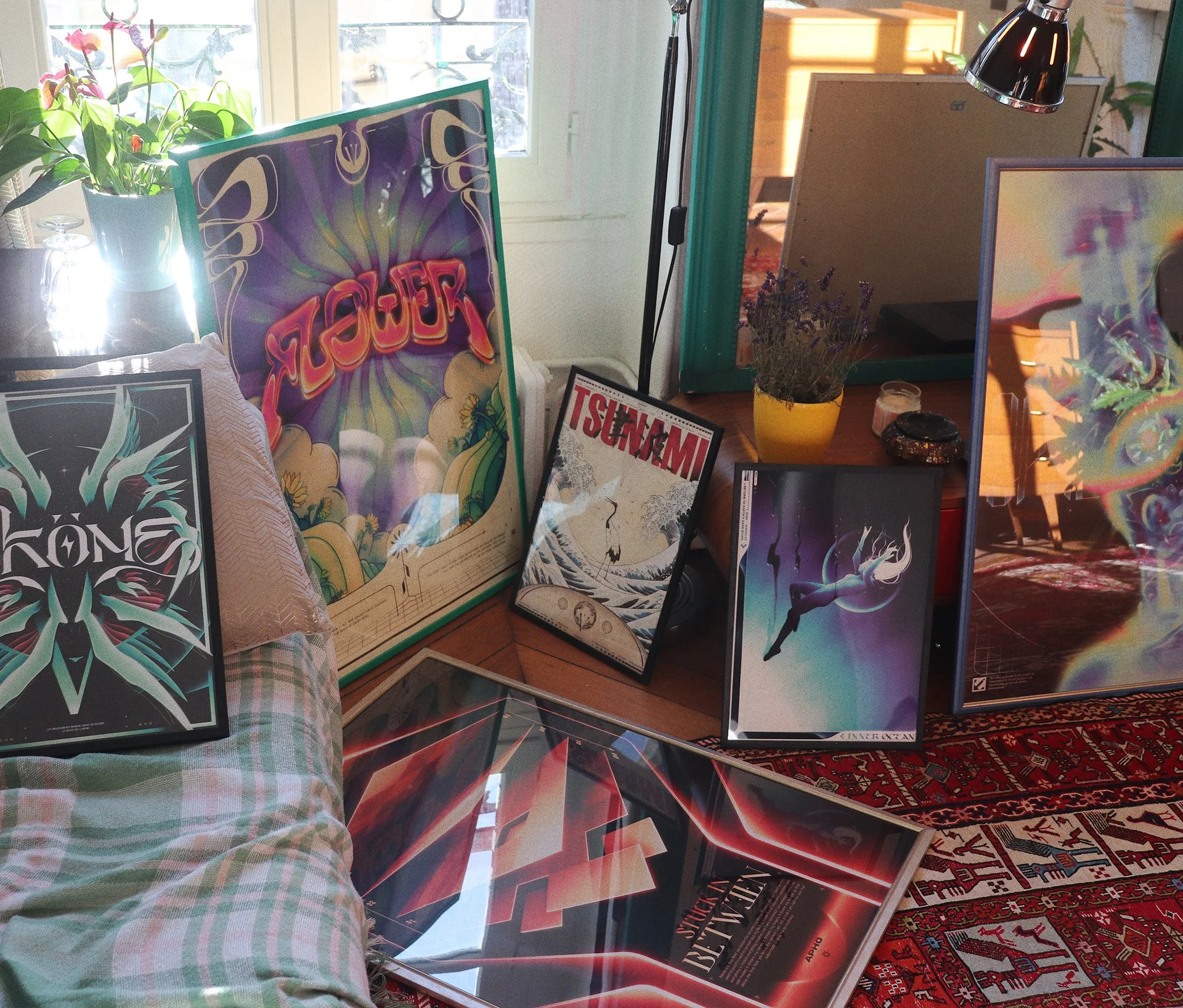 Designs originaux ou adaptés de commissions produites pour des artistes de la scène musicale, toutes les impressions sont réalisées sur du papier mat de haute qualité pour décorer vos murs longtemps.